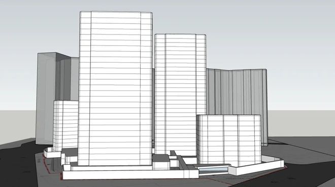 可以看到,为了消化约2600㎡的配套用房,2号楼延伸出来的配套用房做了两层,向北衔接车库出入口,也充当了这一段围墙的作用。