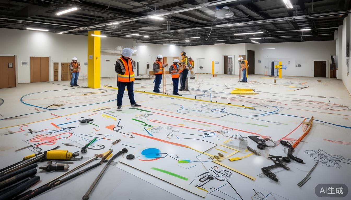 他们经过诸多思考跟讨论,十分谨慎细微地优化了具体的班组排班细节等情况,这可不是轻易就能计划决定下来的。要做到精细无差错,以此来全面确保能够从早上8点一直到晚上6点。该时期整个生产流程中,始终运转处于最高效运作良好状态。然后在其中把室内整体粉刷工作还有同样紧急水电工程二者同步共同推进。毕竟施工场地资源时间有限,要是某个工程缓慢就极会出现窝工状态,进而严重影响施工速度跟预算。